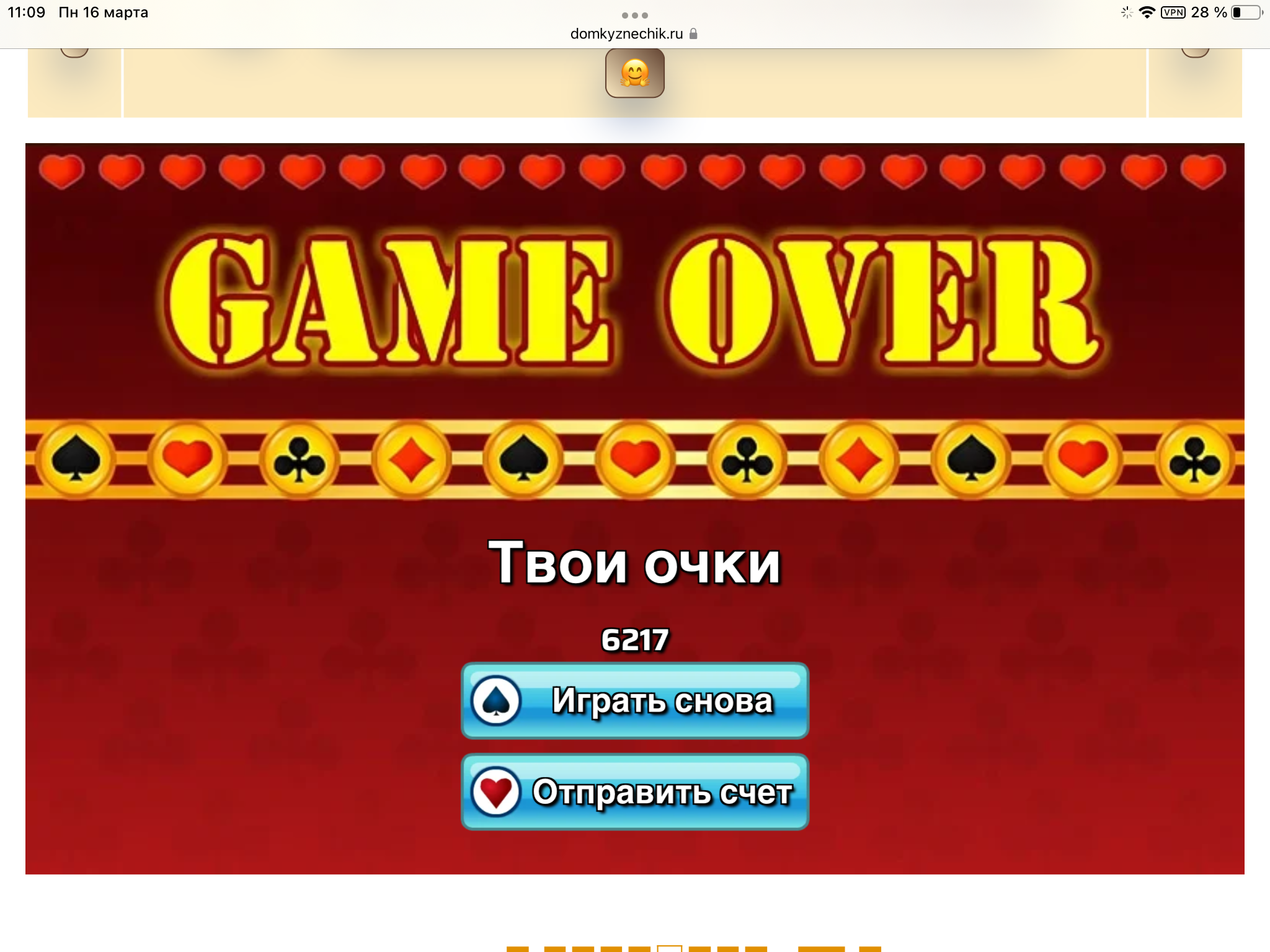 <tr><td height="35" style="background:url('') #4a150e;padding-top:7px;color:#FAE8C0;" align="center"><b>Сыграй в игру,выложи скрин и получи приз.В сутки 5 🎁 <br />