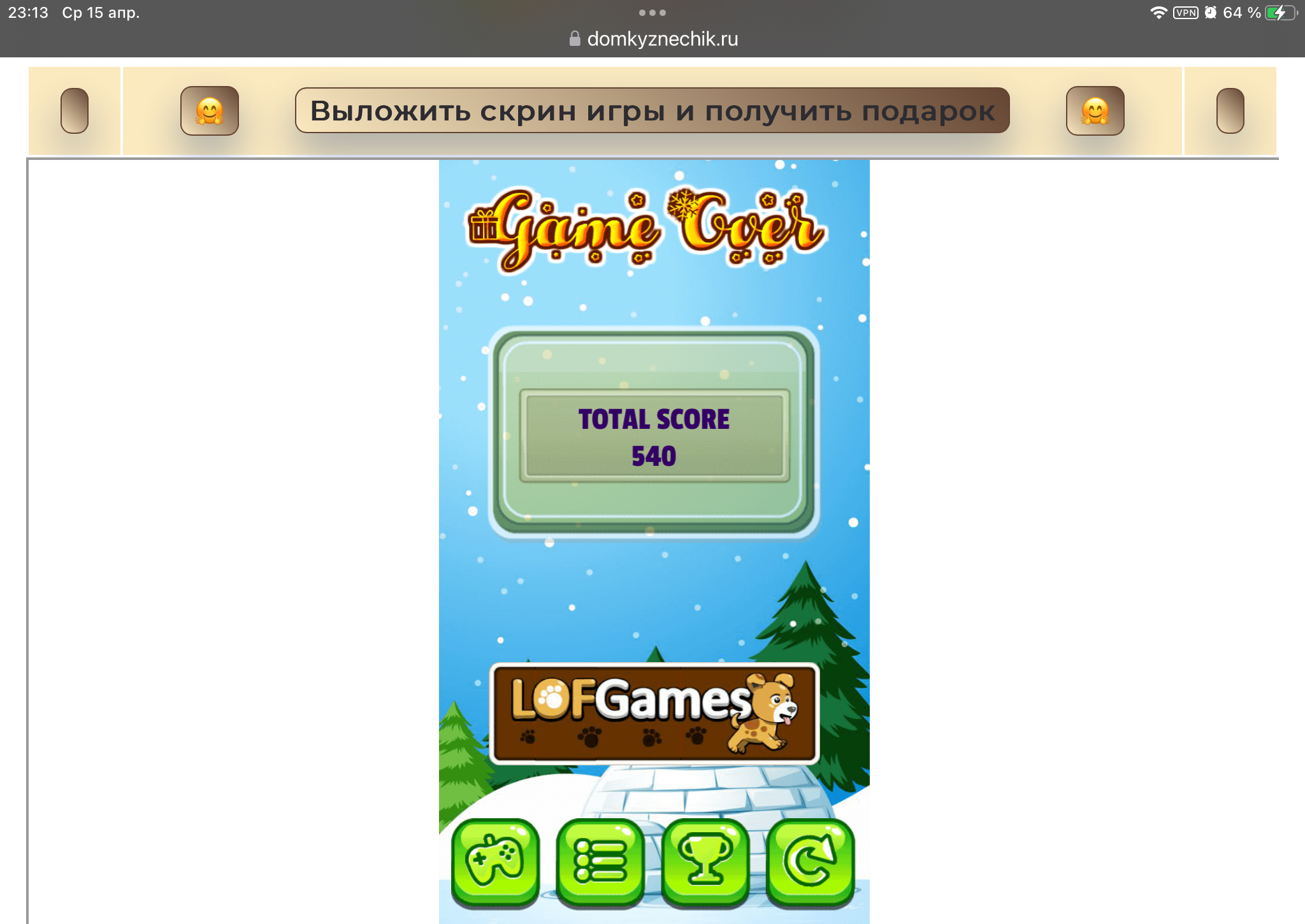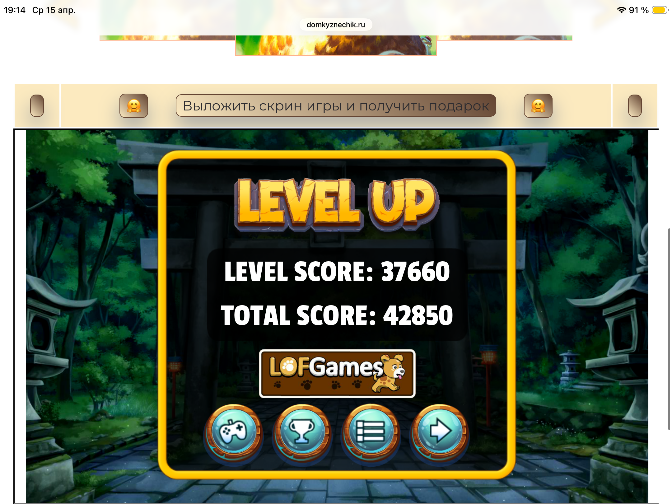 <tr><td height="35" style="background:url('') #4a150e;padding-top:7px;color:#FAE8C0;" align="center"><b>Сыграй в игру,выложи скрин и получи приз.В сутки 5 🎁 <br />