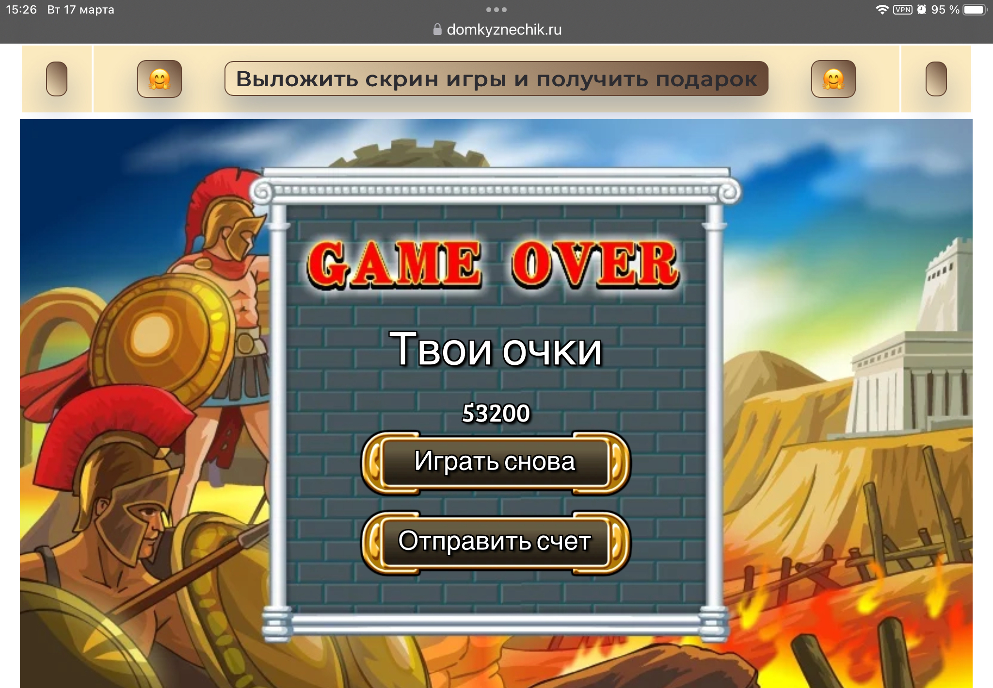 <tr><td height="35" style="background:url('') #4a150e;padding-top:7px;color:#FAE8C0;" align="center"><b>Сыграй в игру,выложи скрин и получи приз.В сутки 5 🎁 <br />