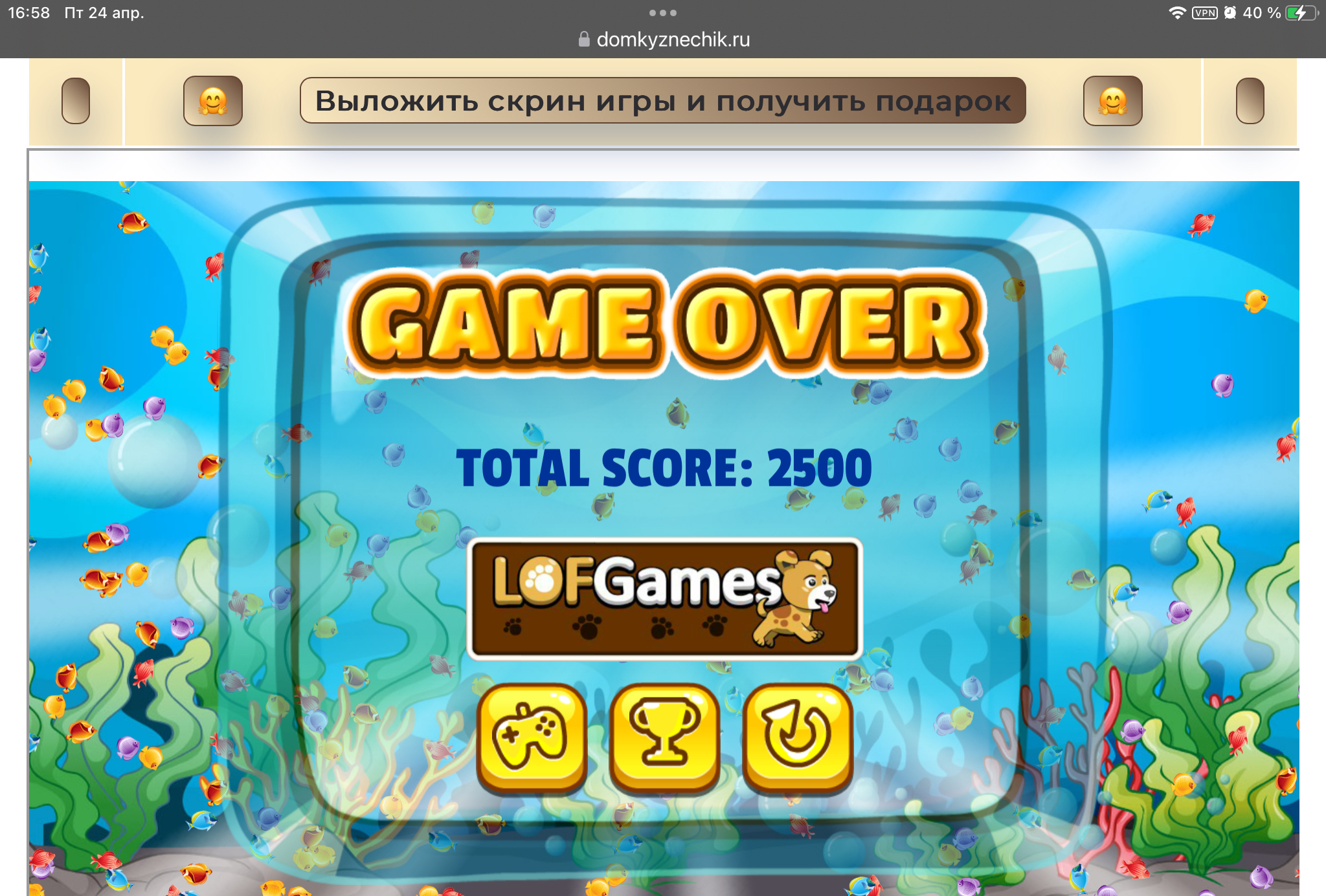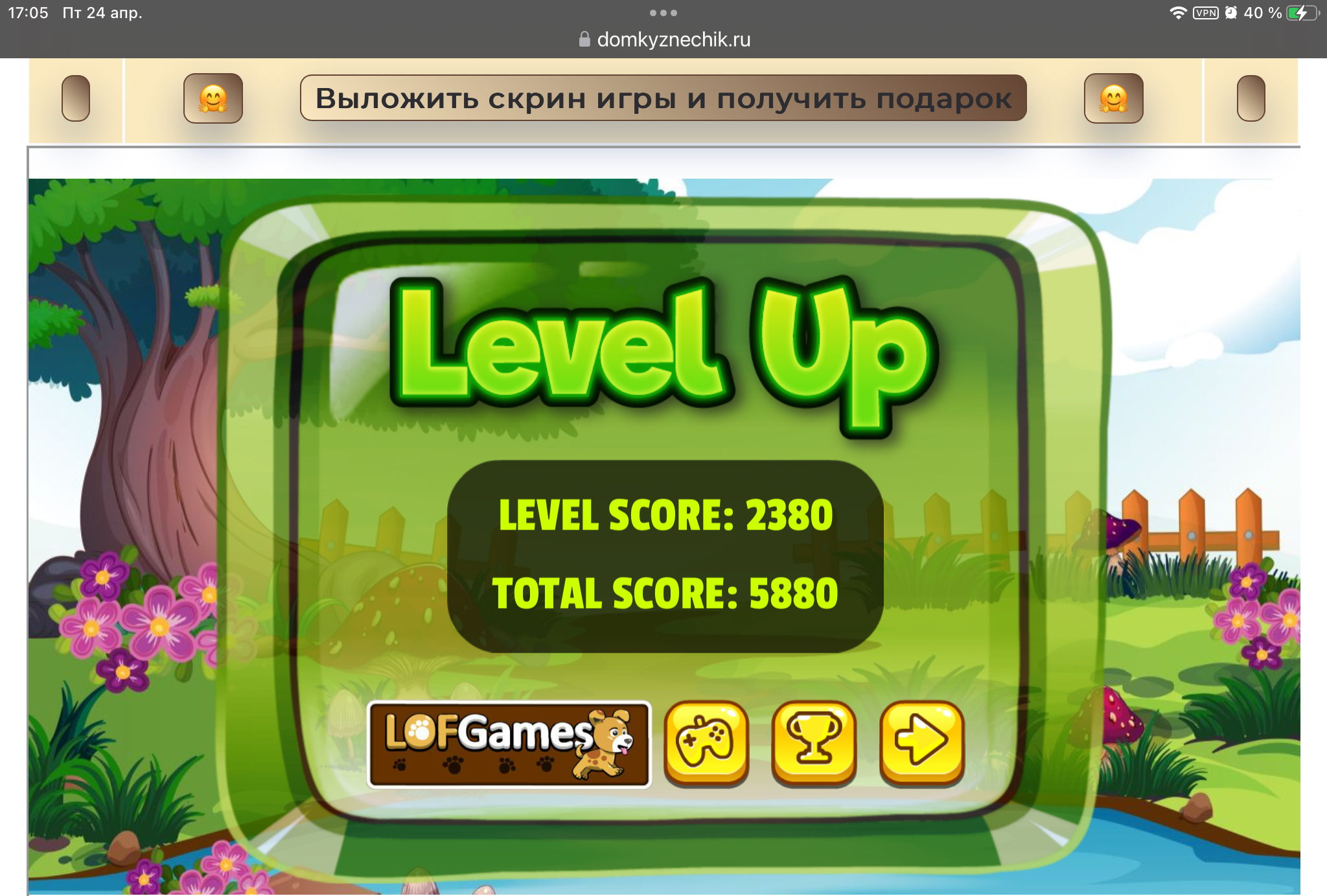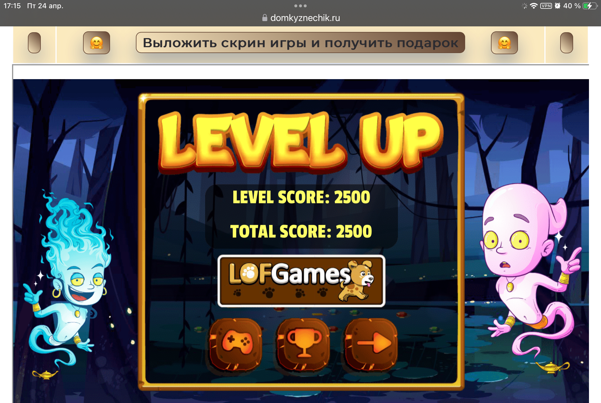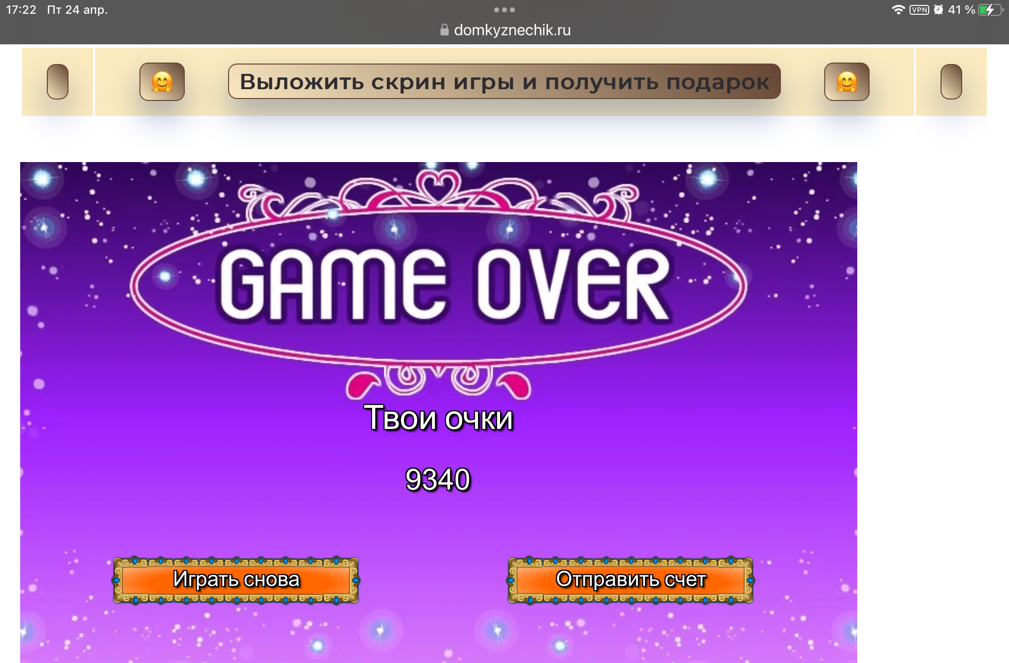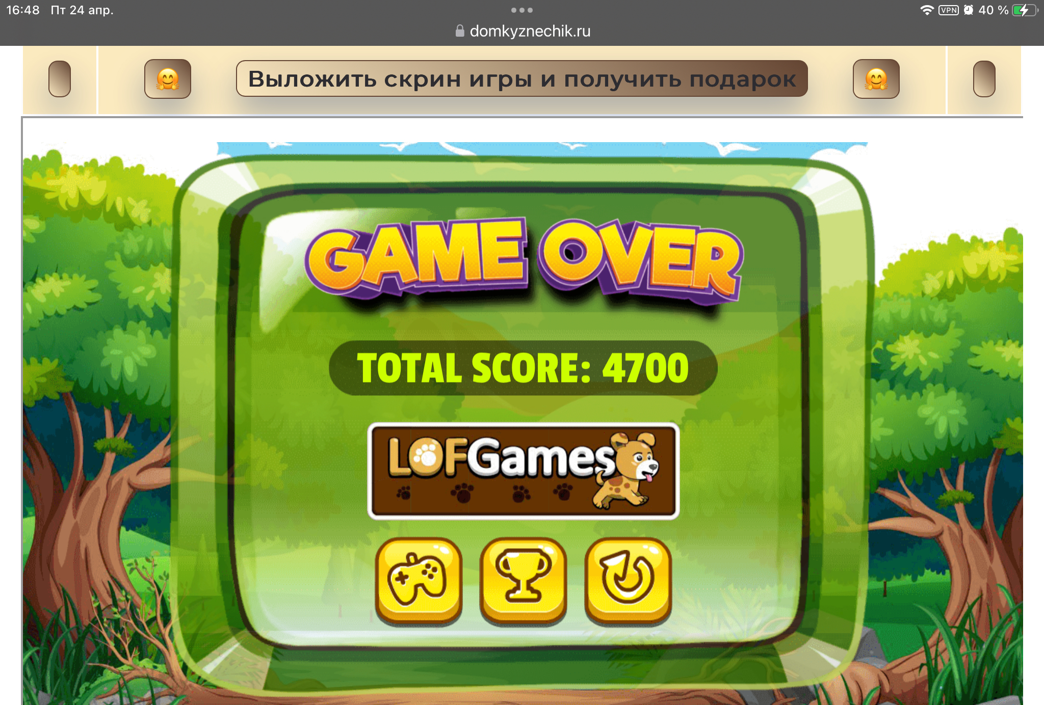 <tr><td height="35" style="background:url('') #4a150e;padding-top:7px;color:#FAE8C0;" align="center"><b>Сыграй в игру,выложи скрин и получи приз.В сутки 5 🎁 <br />