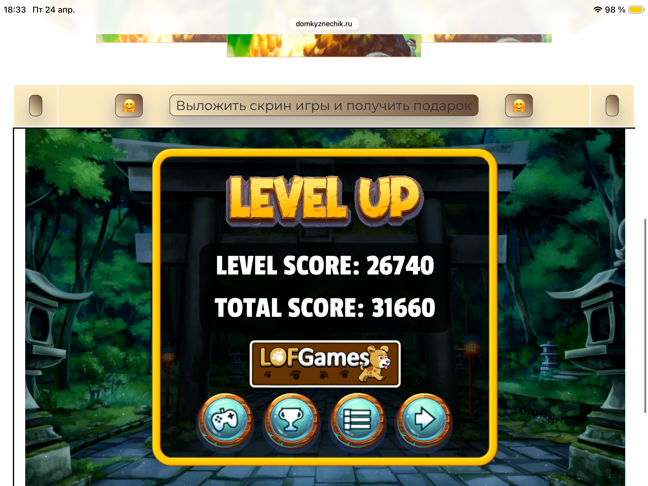 <tr><td height="35" style="background:url('') #4a150e;padding-top:7px;color:#FAE8C0;" align="center"><b>Сыграй в игру,выложи скрин и получи приз.В сутки 5 🎁 <br />