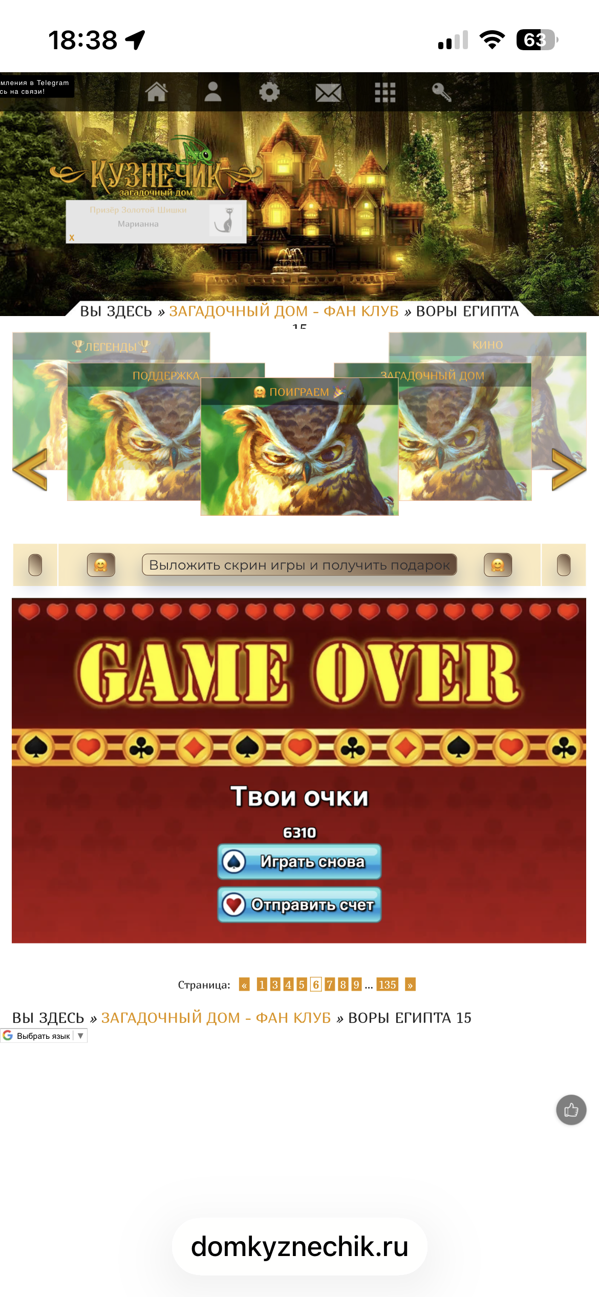 <tr><td height="35" style="background:url('') #4a150e;padding-top:7px;color:#FAE8C0;" align="center"><b>Сыграй в игру,выложи скрин и получи приз.В сутки 5 🎁 <br />