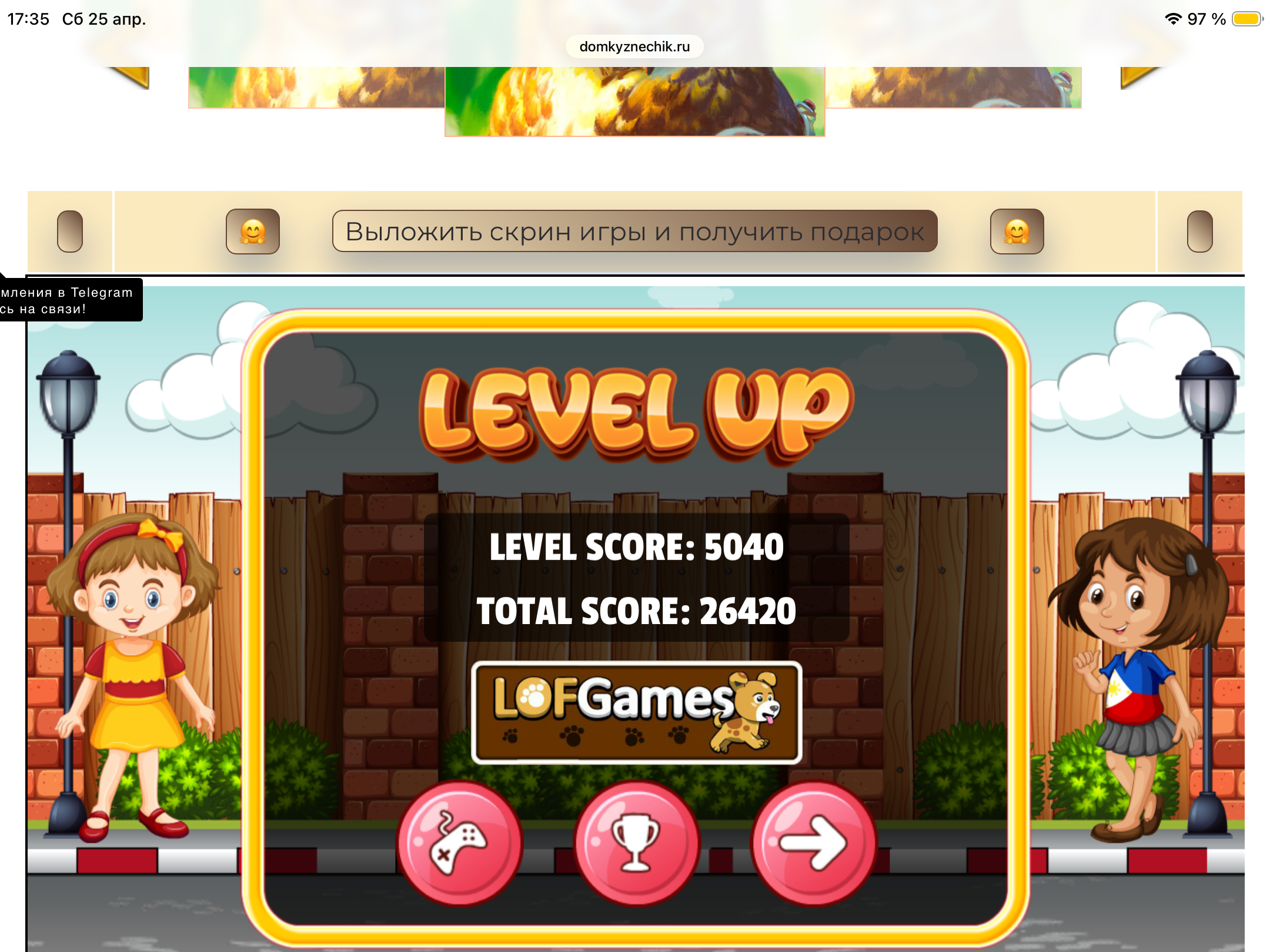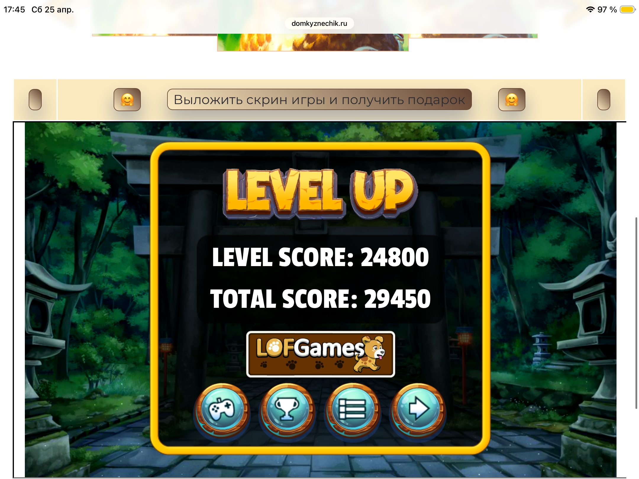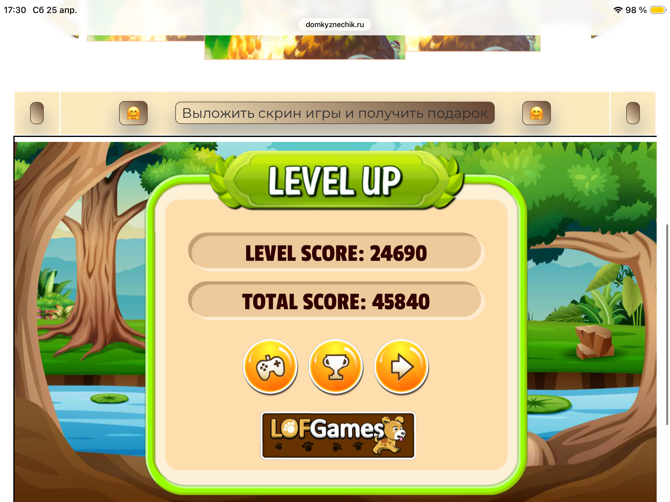 <tr><td height="35" style="background:url('') #4a150e;padding-top:7px;color:#FAE8C0;" align="center"><b>Сыграй в игру,выложи скрин и получи приз.В сутки 5 🎁 <br />