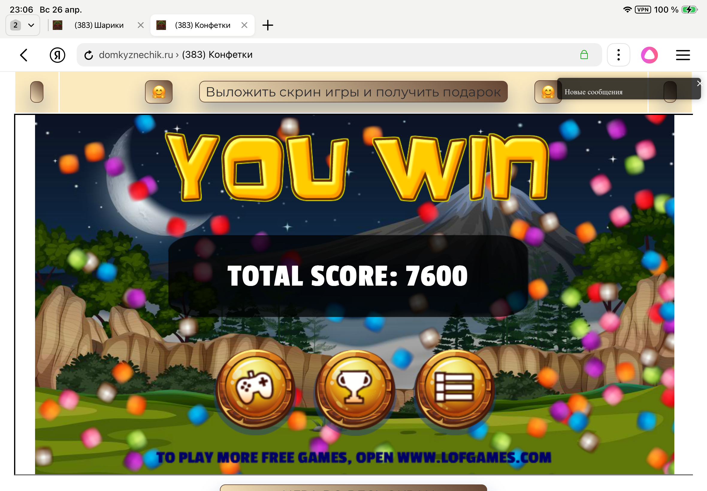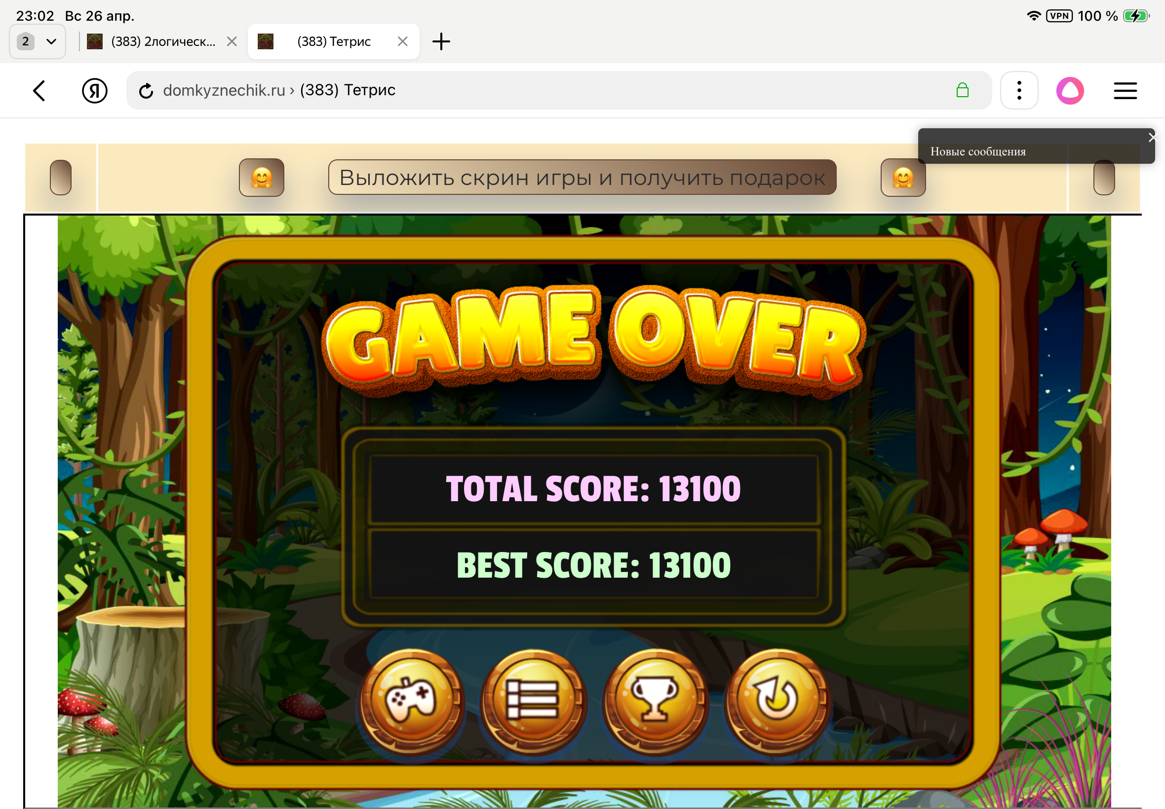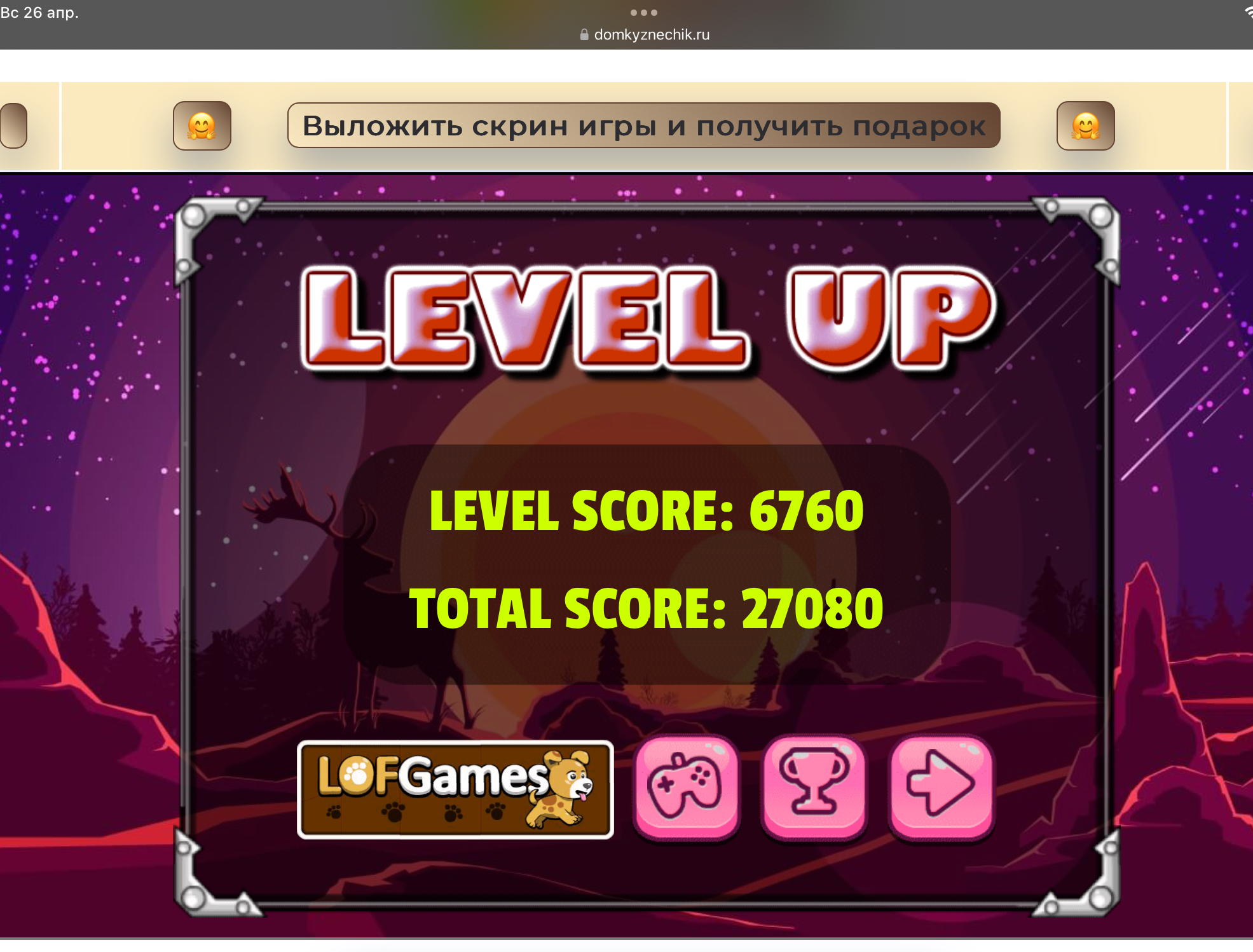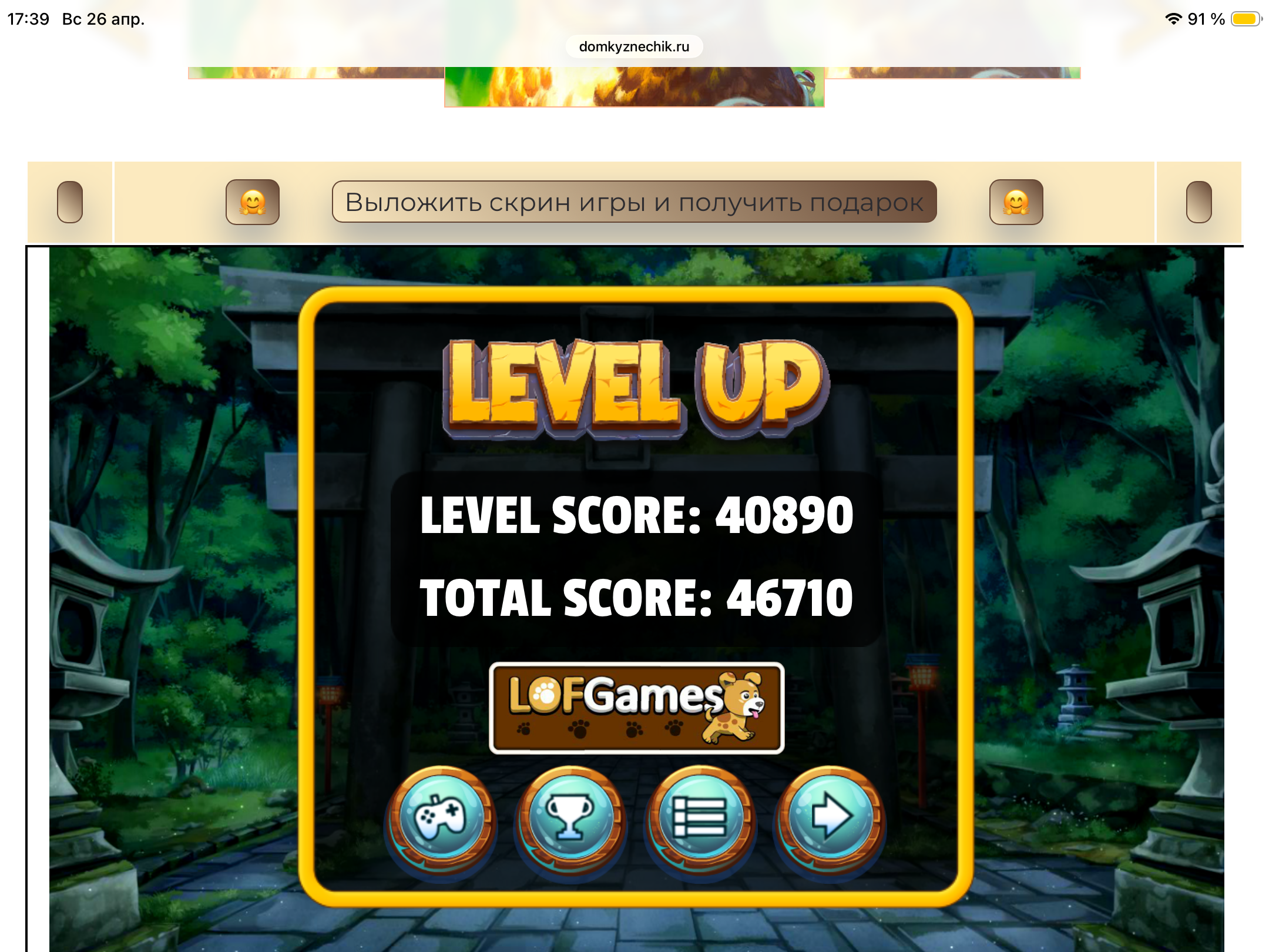 <tr><td height="35" style="background:url('') #4a150e;padding-top:7px;color:#FAE8C0;" align="center"><b>Сыграй в игру,выложи скрин и получи приз.В сутки 5 🎁 <br />
