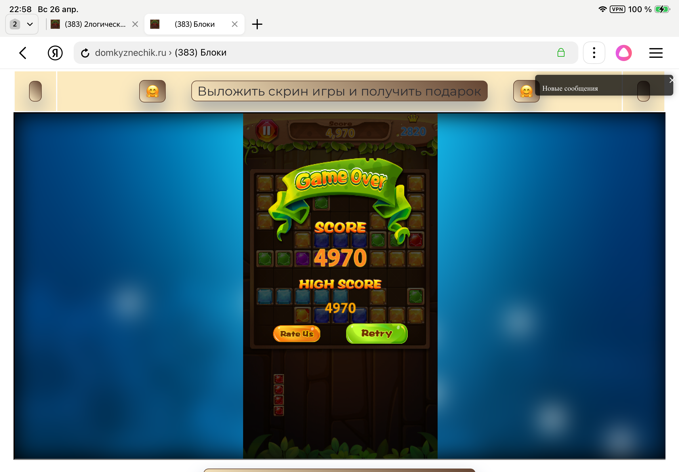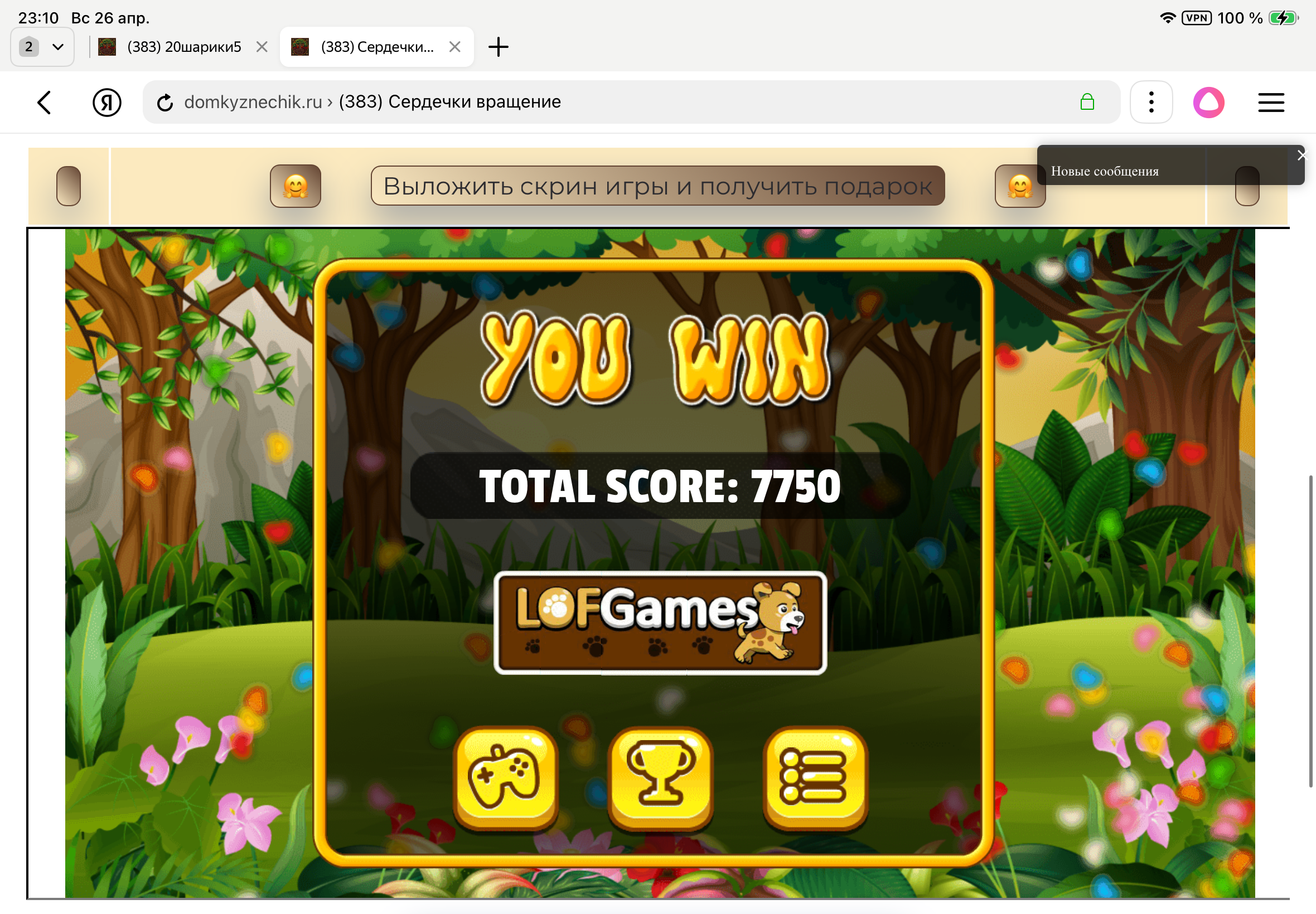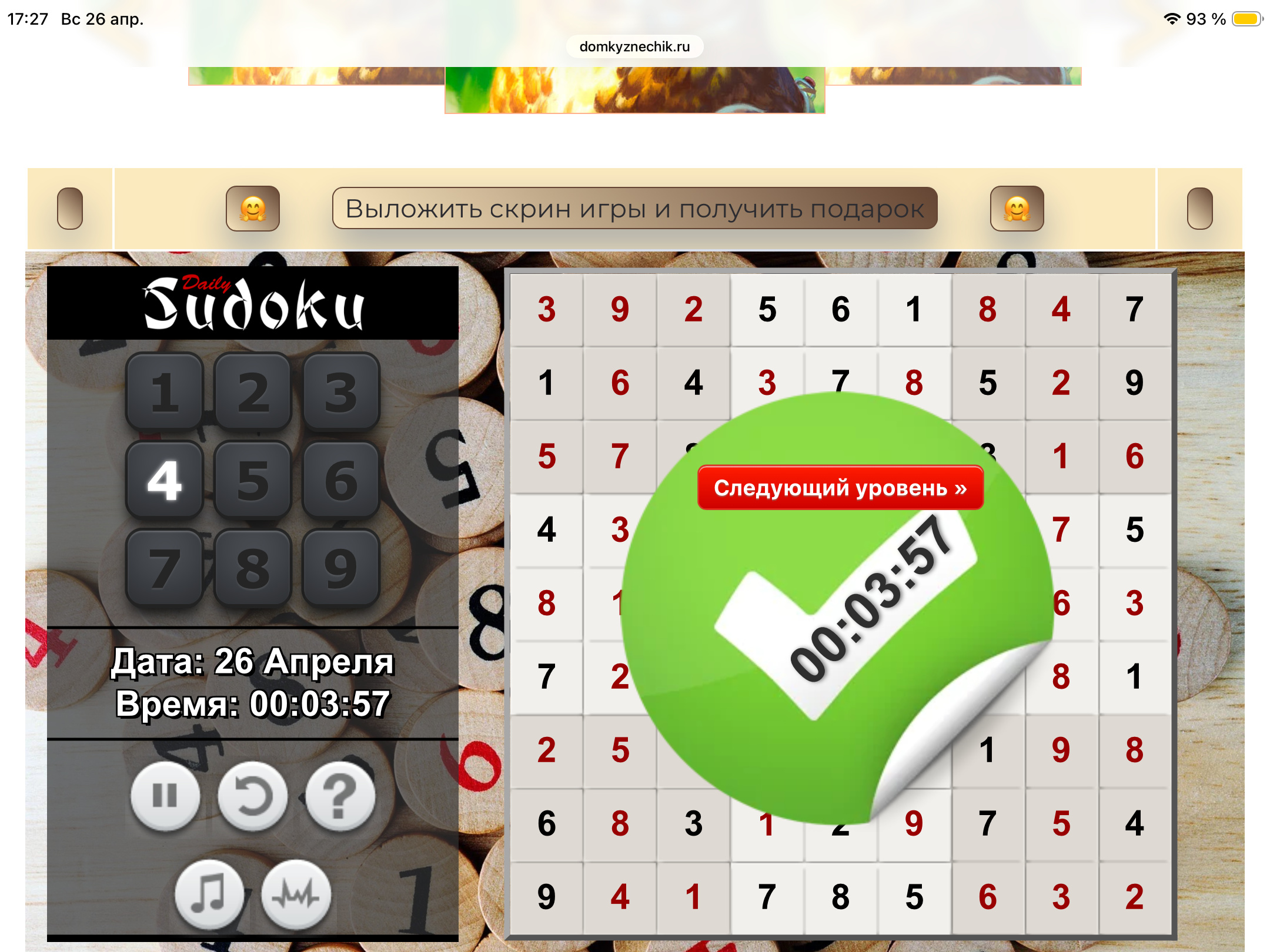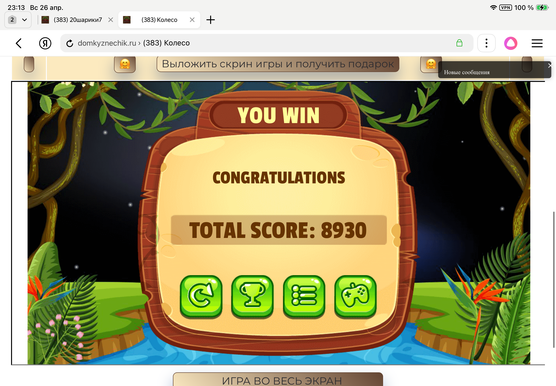 <tr><td height="35" style="background:url('') #4a150e;padding-top:7px;color:#FAE8C0;" align="center"><b>Сыграй в игру,выложи скрин и получи приз.В сутки 5 🎁 <br />