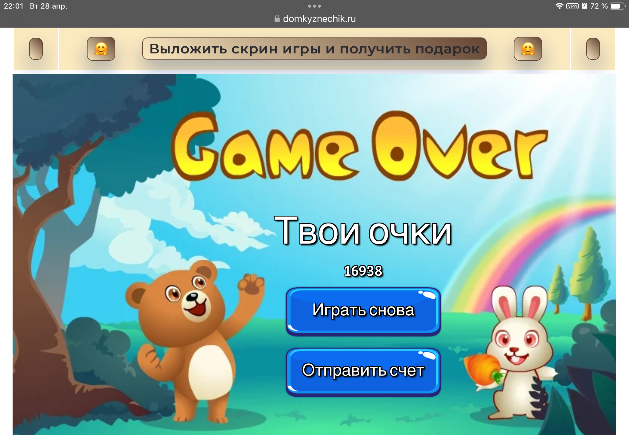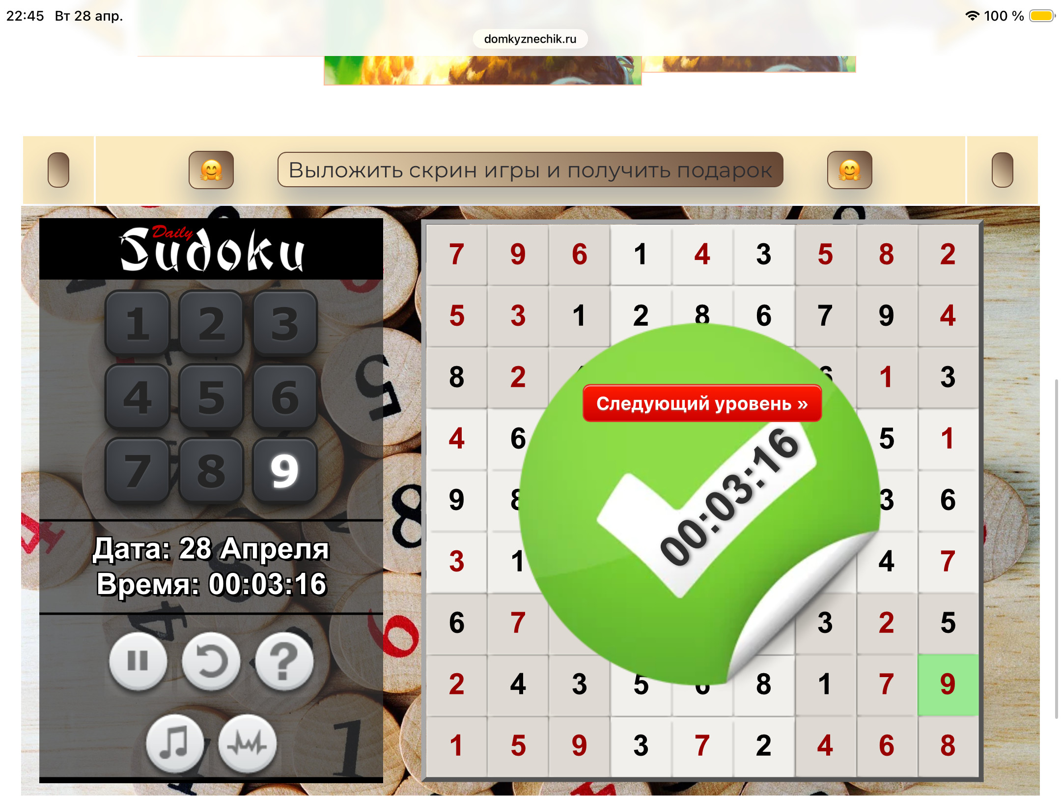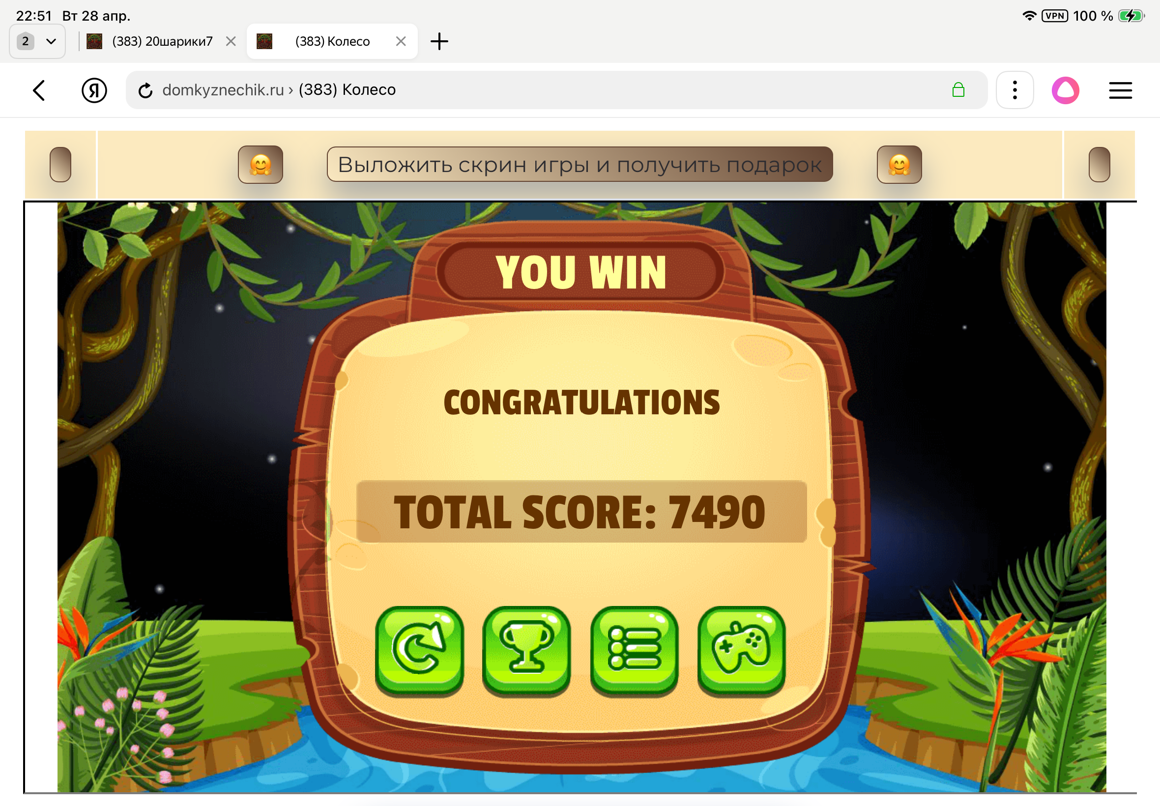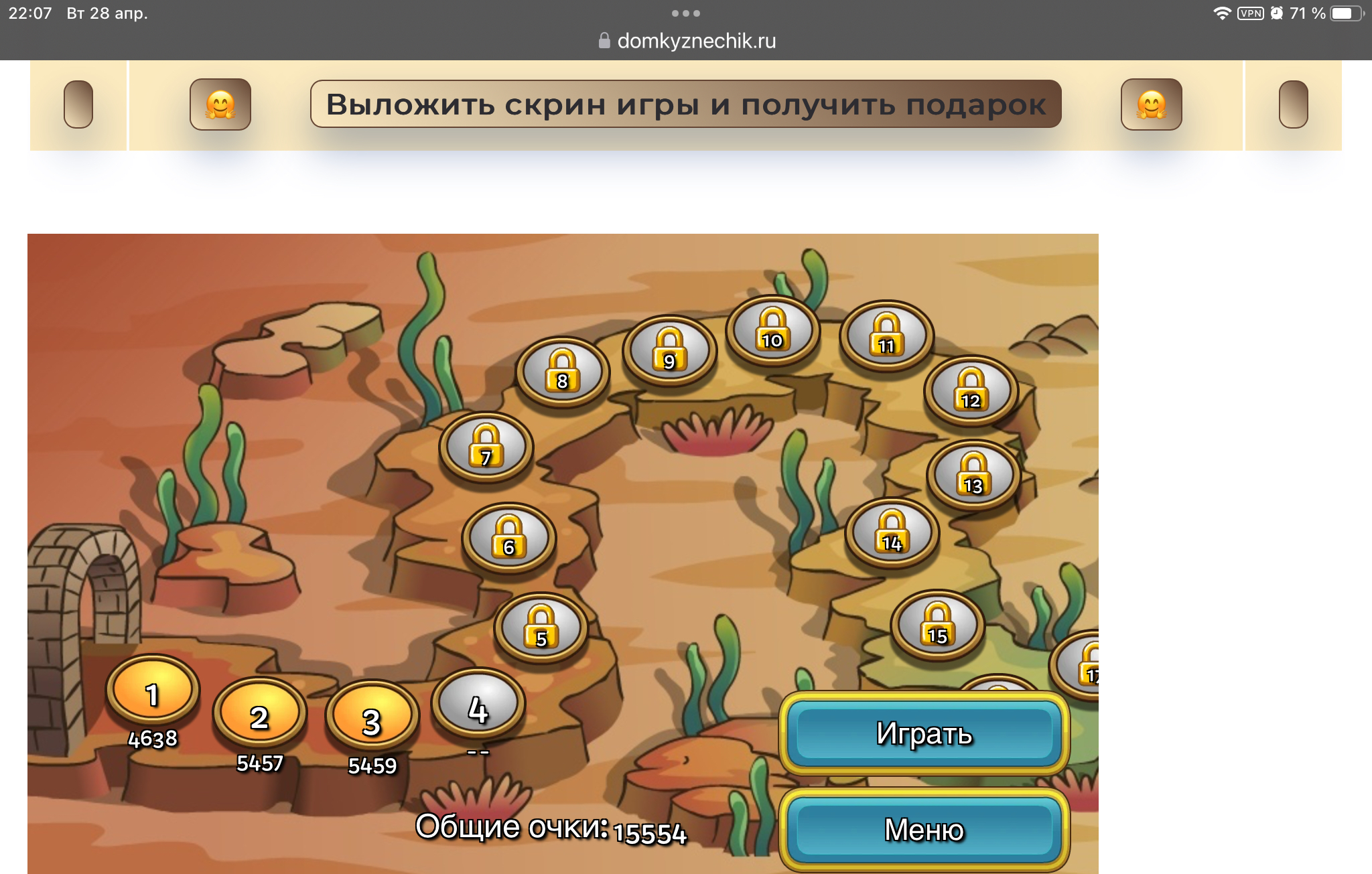<tr><td height="35" style="background:url('') #4a150e;padding-top:7px;color:#FAE8C0;" align="center"><b>Сыграй в игру,выложи скрин и получи приз.В сутки 5 🎁 <br />