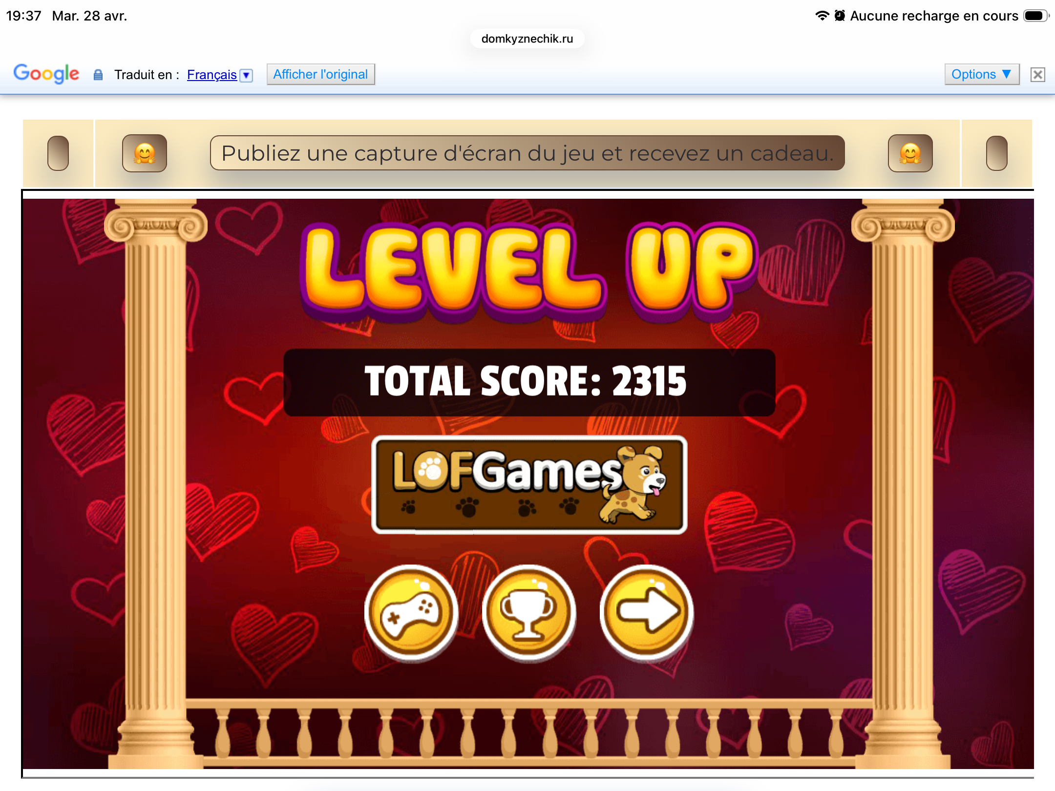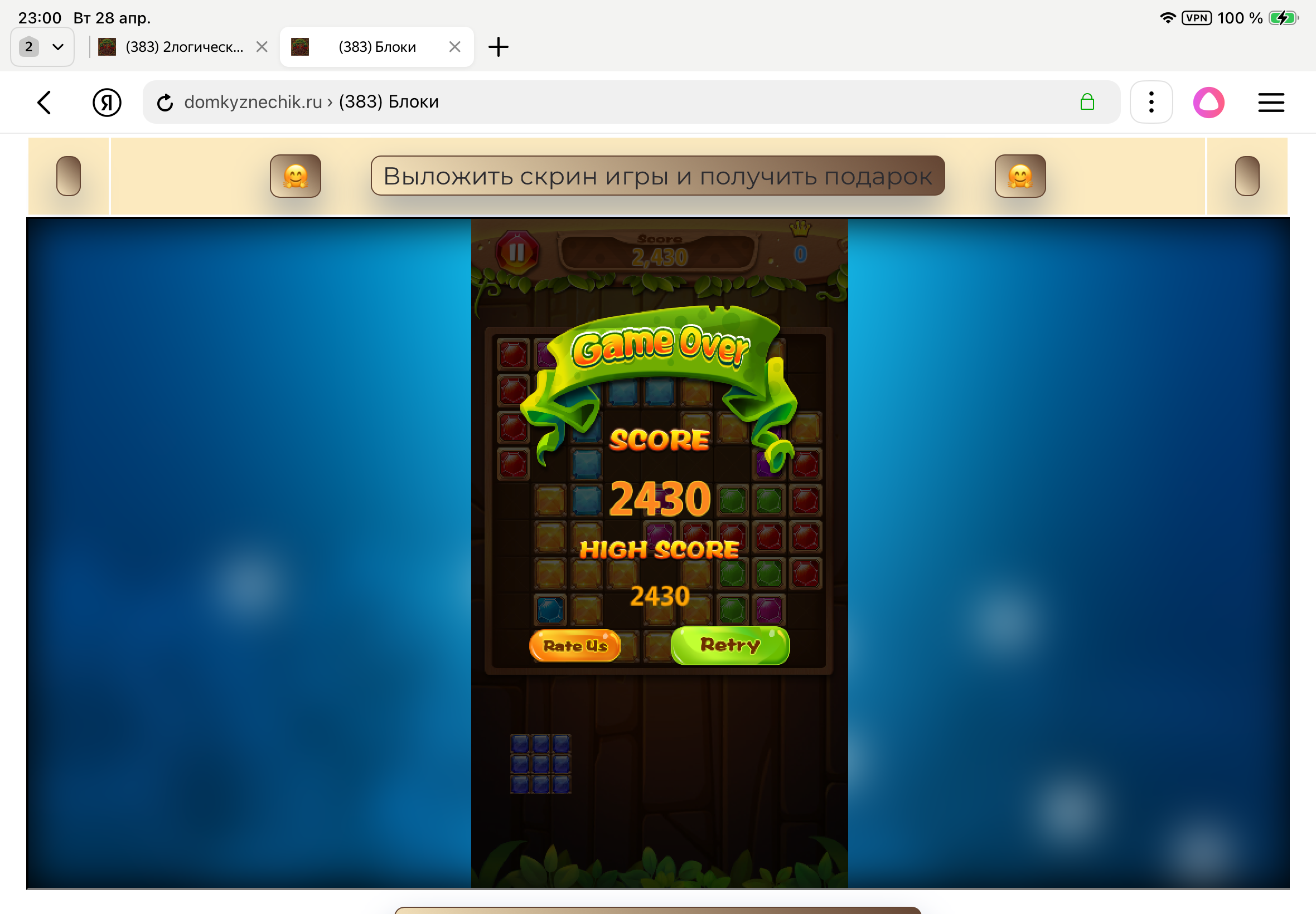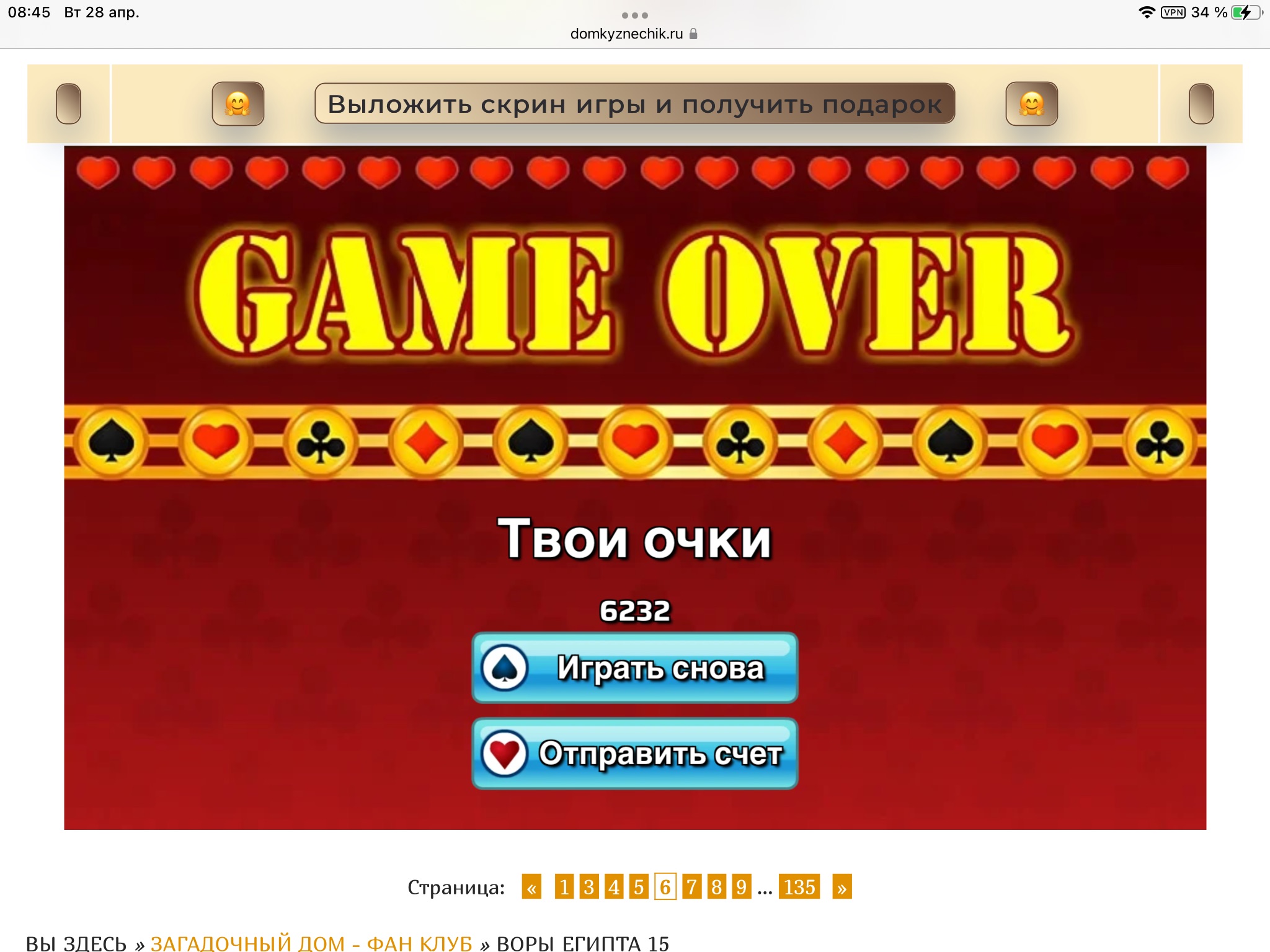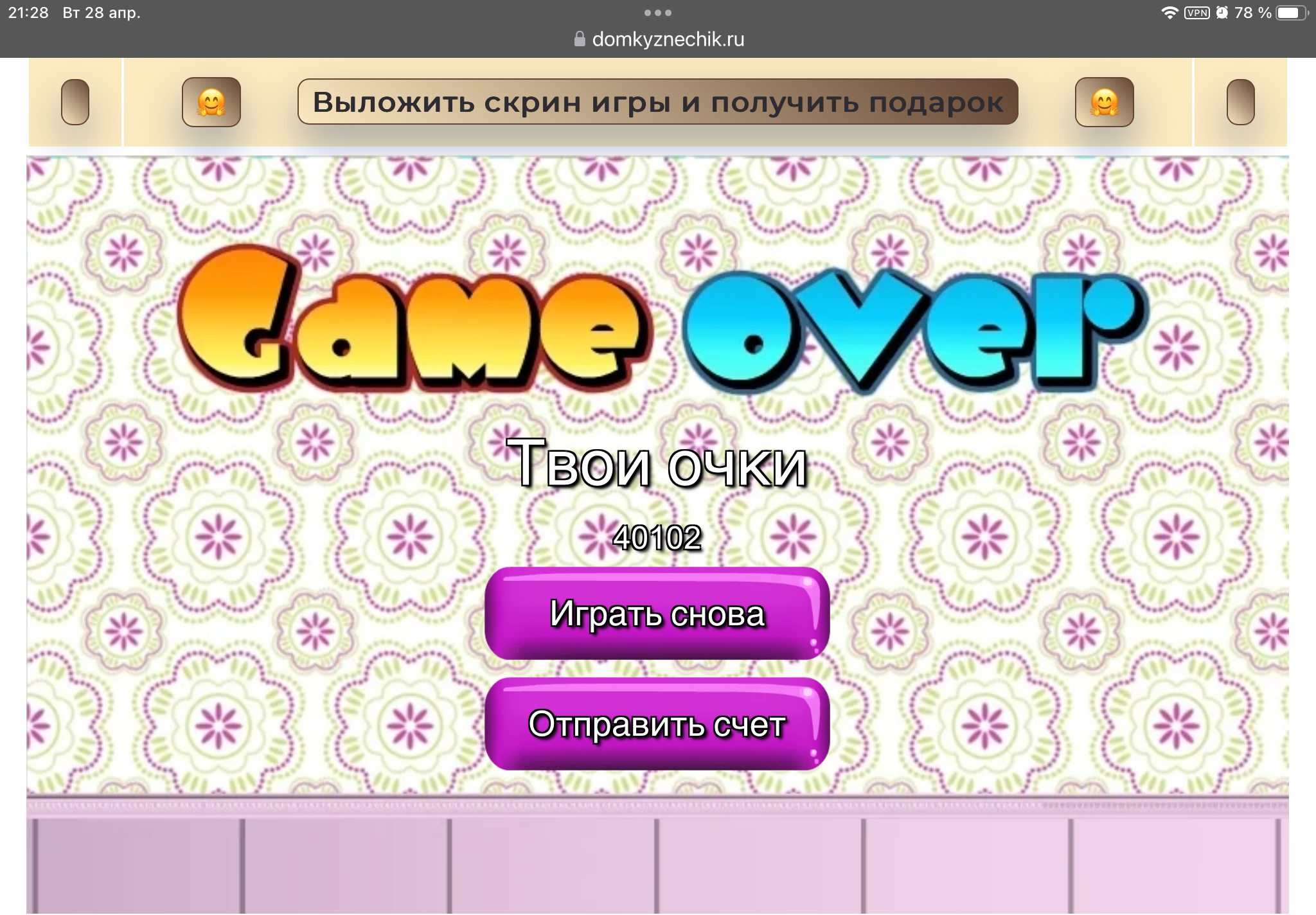 <tr><td height="35" style="background:url('') #4a150e;padding-top:7px;color:#FAE8C0;" align="center"><b>Сыграй в игру,выложи скрин и получи приз.В сутки 5 🎁 <br />