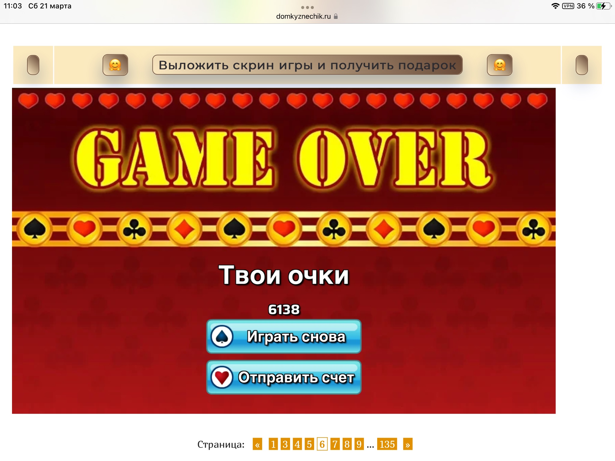<tr><td height="35" style="background:url('') #4a150e;padding-top:7px;color:#FAE8C0;" align="center"><b>Сыграй в игру,выложи скрин и получи приз.В сутки 5 🎁 <br />