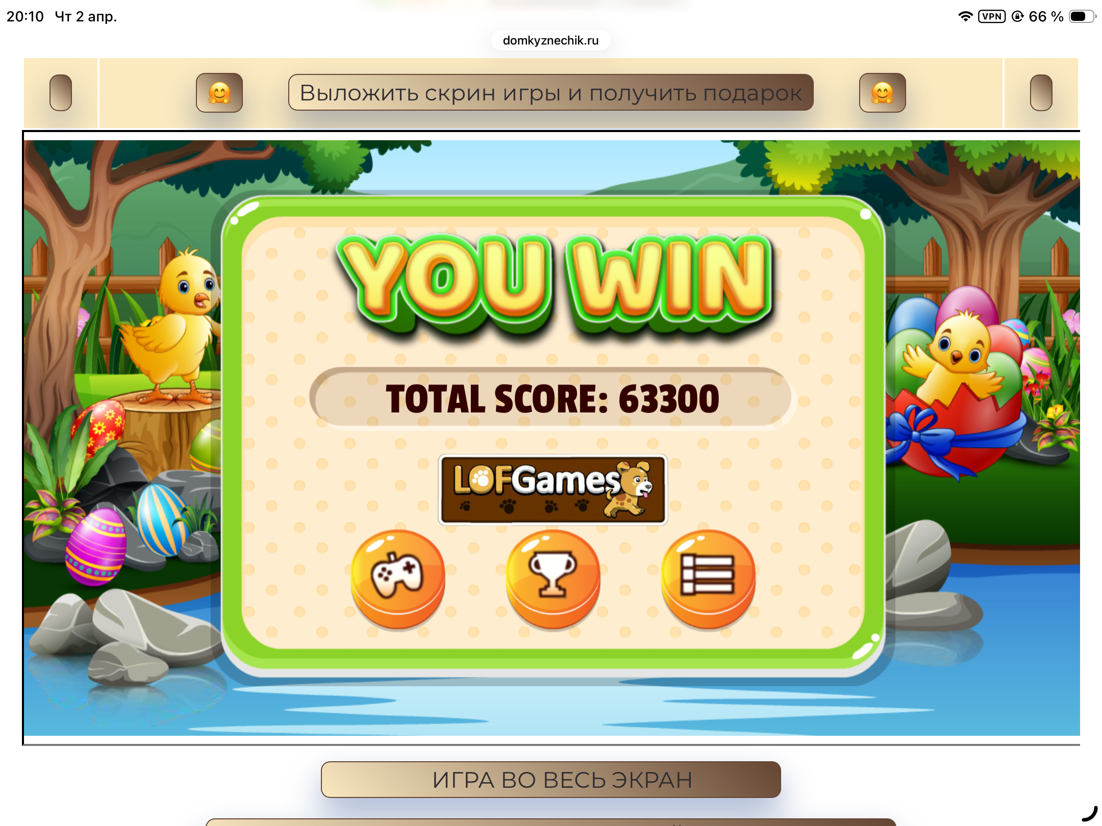 <tr><td height="35" style="background:url('') #4a150e;padding-top:7px;color:#FAE8C0;" align="center"><b>Сыграй в игру,выложи скрин и получи приз.В сутки 5 🎁 <br />