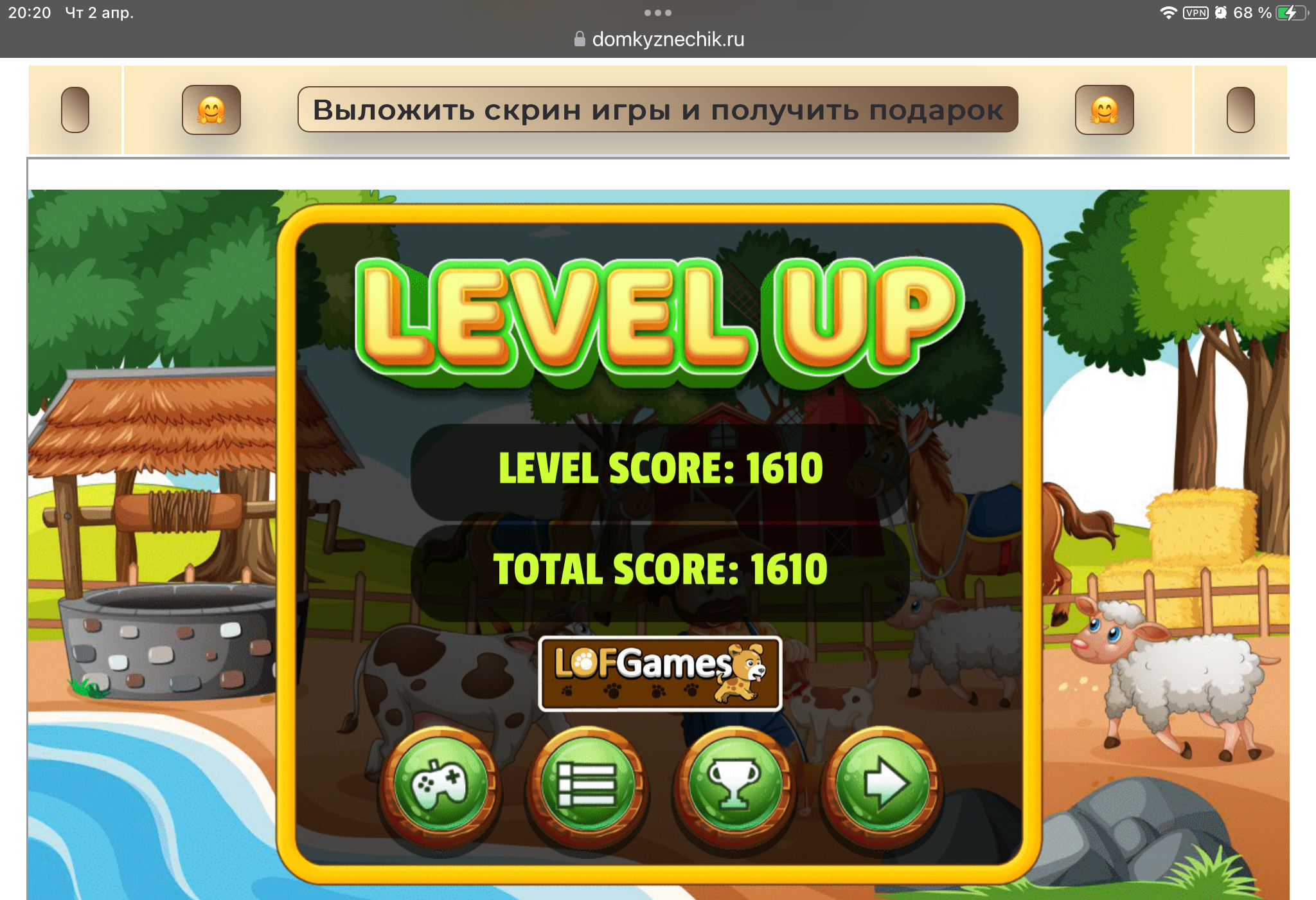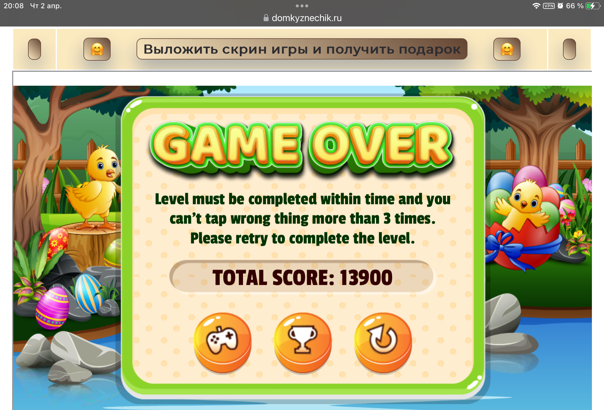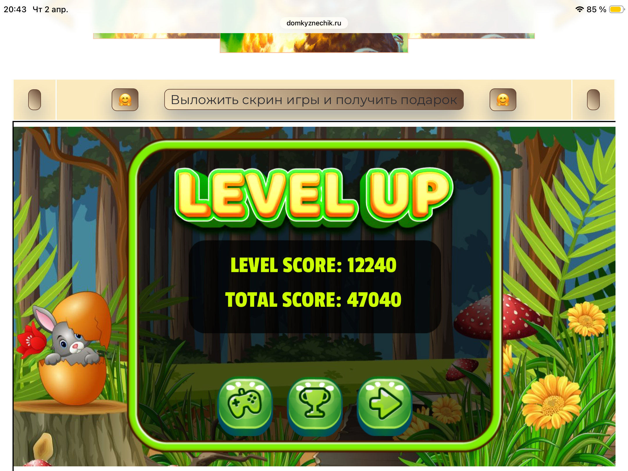 <tr><td height="35" style="background:url('') #4a150e;padding-top:7px;color:#FAE8C0;" align="center"><b>Сыграй в игру,выложи скрин и получи приз.В сутки 5 🎁 <br />