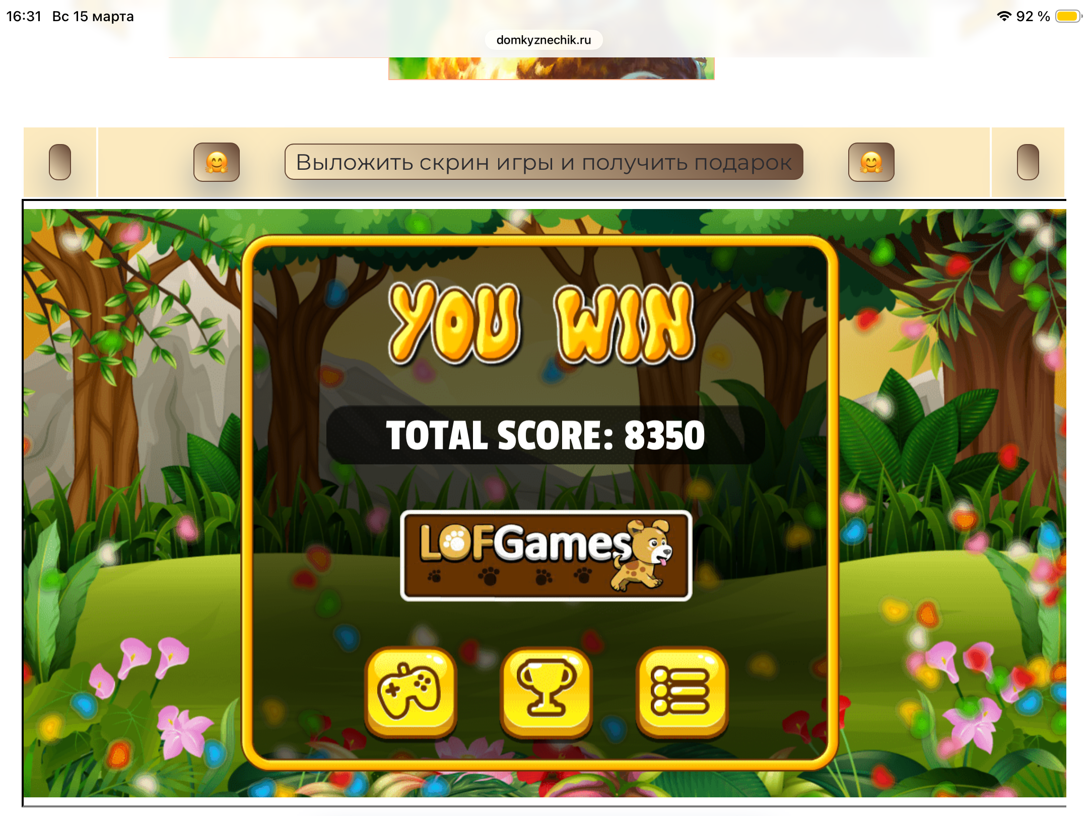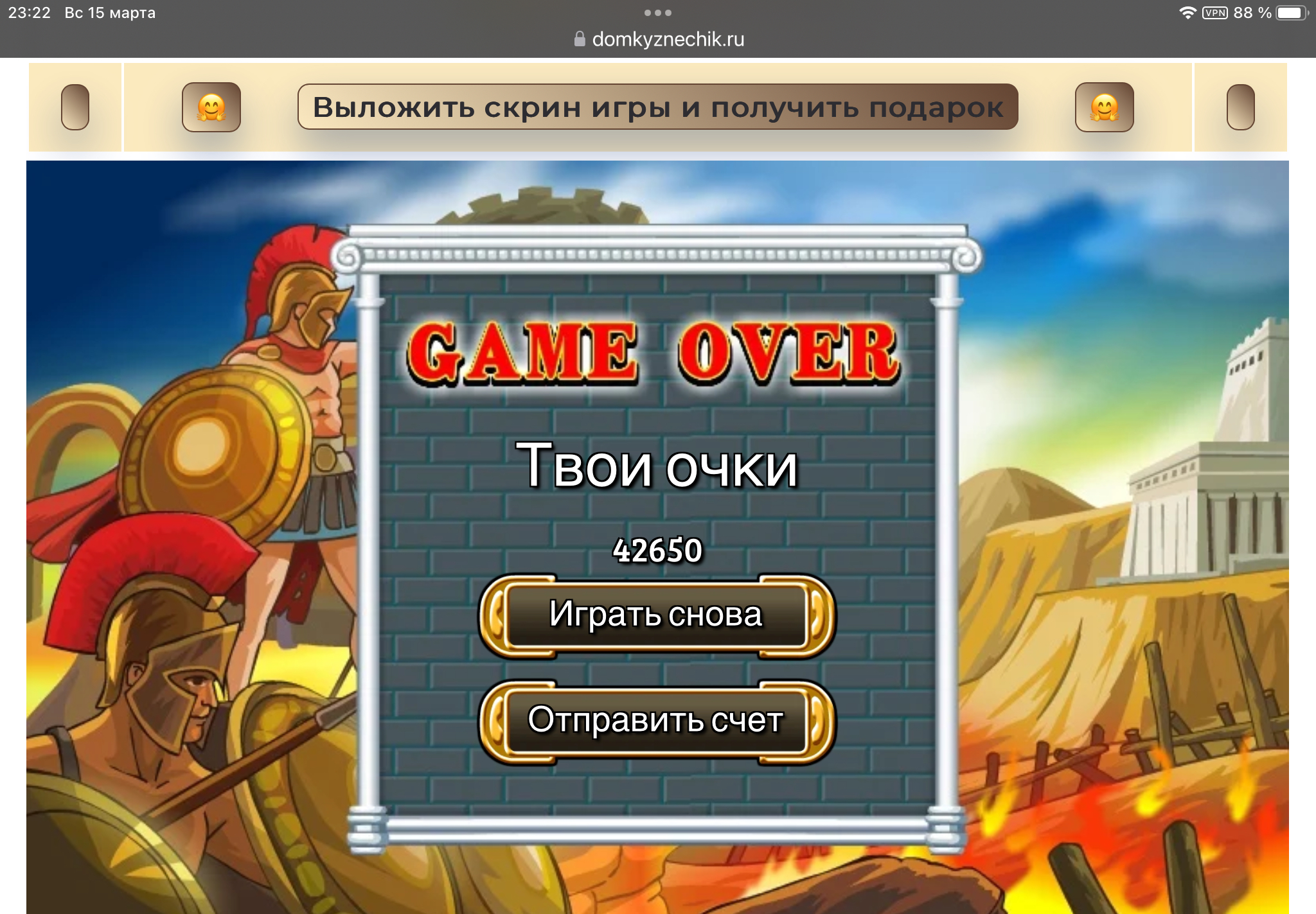 <tr><td height="35" style="background:url('') #4a150e;padding-top:7px;color:#FAE8C0;" align="center"><b>Сыграй в игру,выложи скрин и получи приз.В сутки 5 🎁 <br />