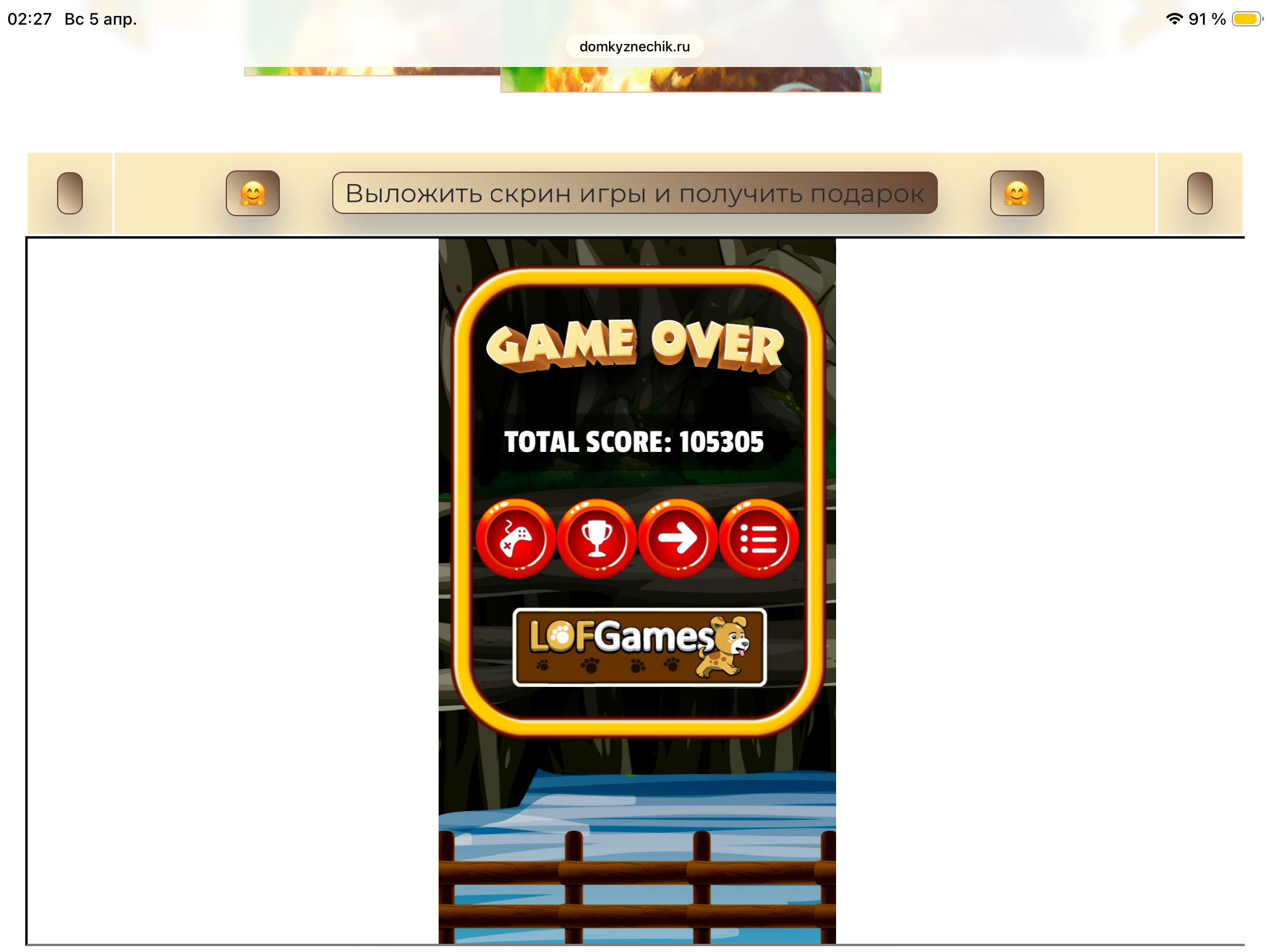 <tr><td height="35" style="background:url('') #4a150e;padding-top:7px;color:#FAE8C0;" align="center"><b>Сыграй в игру,выложи скрин и получи приз.В сутки 5 🎁 <br />