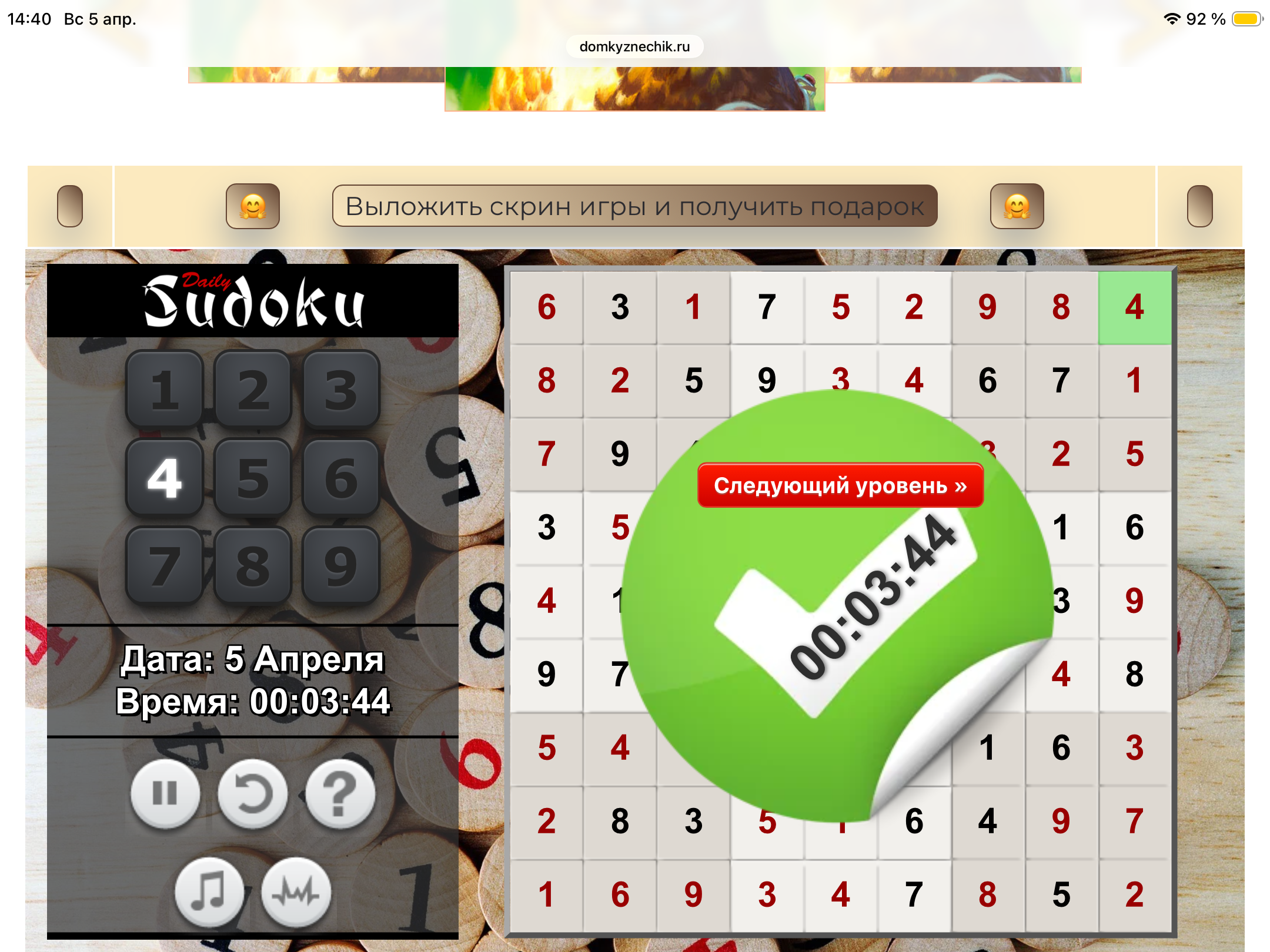 <tr><td height="35" style="background:url('') #4a150e;padding-top:7px;color:#FAE8C0;" align="center"><b>Сыграй в игру,выложи скрин и получи приз.В сутки 5 🎁 <br />