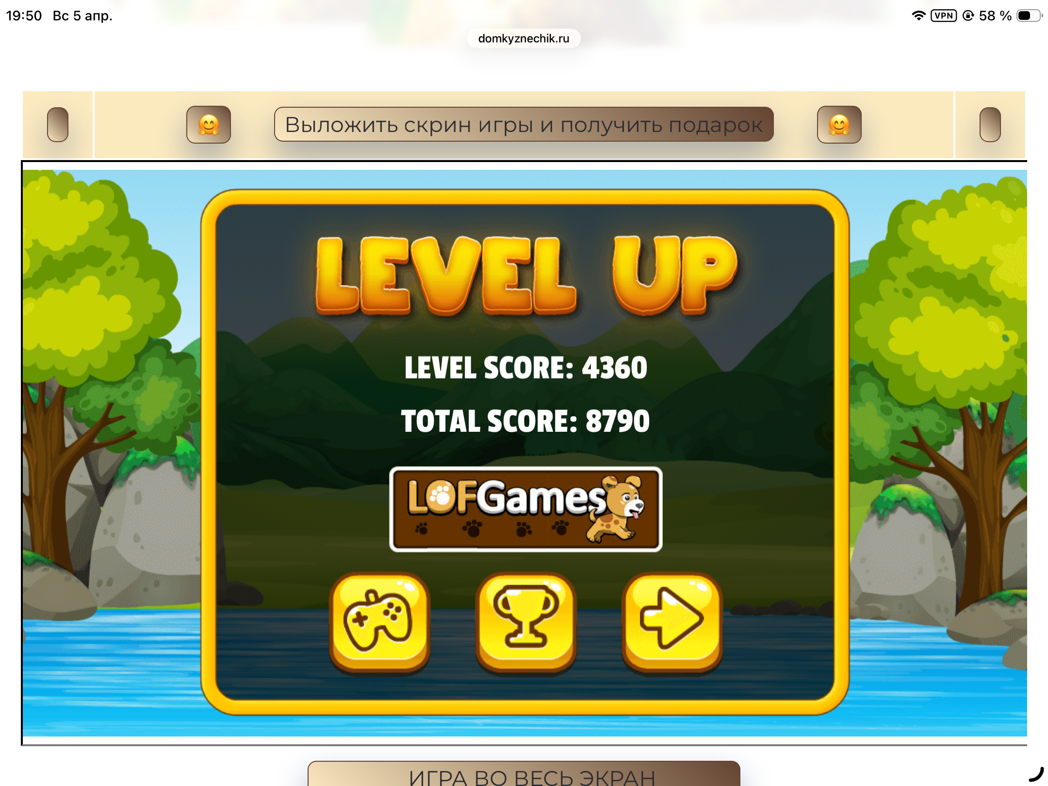 <tr><td height="35" style="background:url('') #4a150e;padding-top:7px;color:#FAE8C0;" align="center"><b>Сыграй в игру,выложи скрин и получи приз.В сутки 5 🎁 <br />