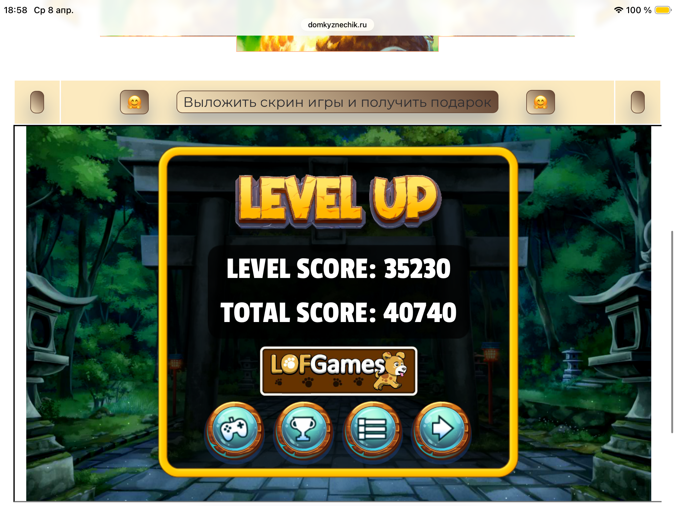 <tr><td height="35" style="background:url('') #4a150e;padding-top:7px;color:#FAE8C0;" align="center"><b>Сыграй в игру,выложи скрин и получи приз.В сутки 5 🎁 <br />